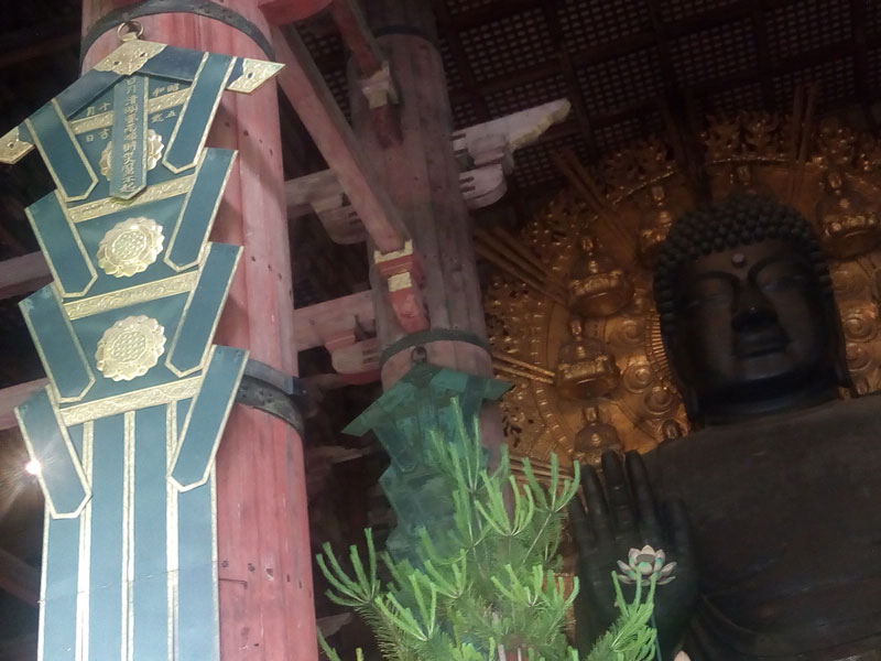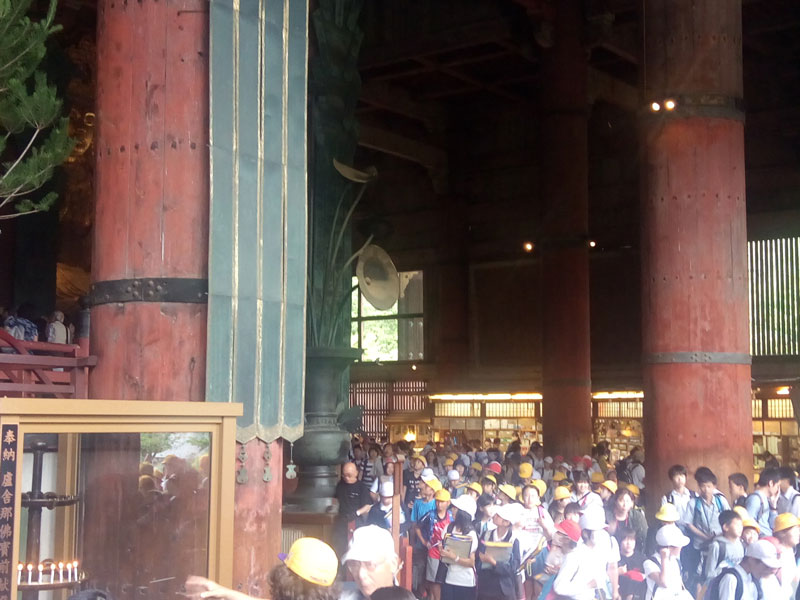 大仏殿の中も身動きが出来ないほどに一杯でした。薄暗い本堂のなかでは、人ごみの流れのなかに大仏の正面から右回りに、
